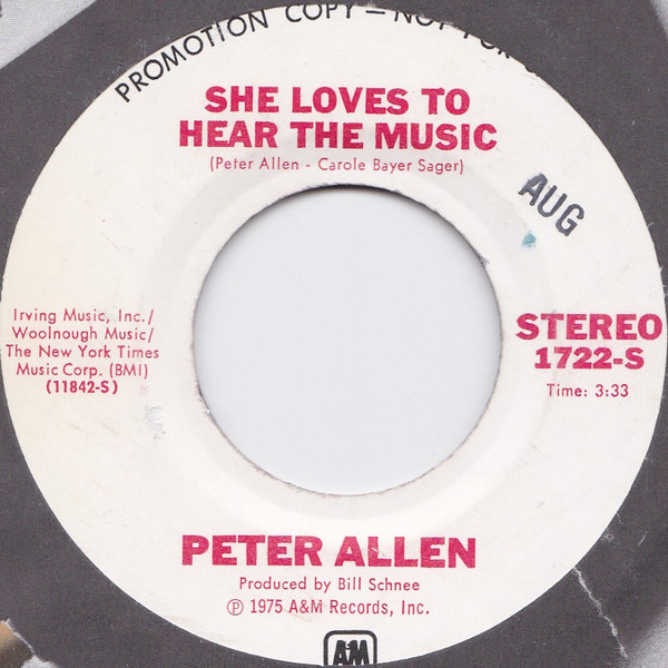 “She Loves to Hear the Music” by Peter Allen (from the album Taught by Experts) is available on Apple Music, Amazon Music, YouTube Music, Tidal, Deezer, Pandora, Spotify, or wherever you listen to music.
